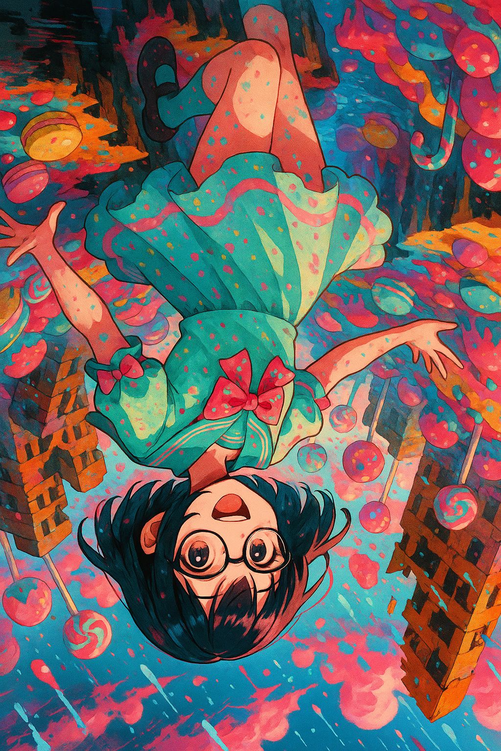 I sing as if the world is melting into pastel chaos at 140 BPM, My voice is playful but tinged with mischief, bouncing between sugary synth leads, distorted toy piano, and a glitchy drum kit that feels just slightly too fast, The genre is a hyperpop-nightmare hybrid, with bubblegum melodies twisted into unexpected minor turns, Between the sparkles and beats, there’s a lurking tension — like dancing on a candy-colored cliff just before it crumbles, ‑acoustic guitar strumming, ‑slow ballad tempo, ‑heavy metal riffs, ‑realistic orchestral strings, ‑country twang, ‑calm meditation pads