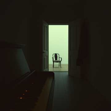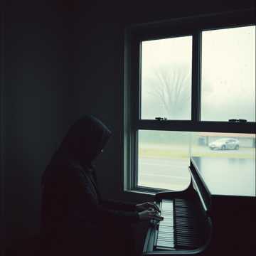 The song opens with sparse piano and haunting pads, setting a heavy, intimate tone, Subtle electronic percussion pulses at 90 BPM, layered with distant reversed textures and deep, warm bass, Cinematic strings and synth swells rise in the choruses, then retreat to leave verses raw and exposed—delicate guitar accents glide between sections, The arrangement embraces negative space, letting tension hang unresolved in the air
