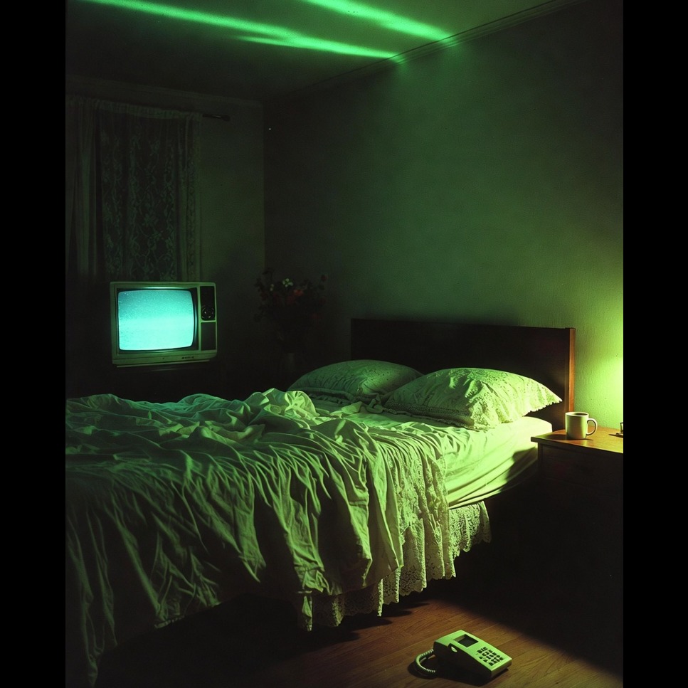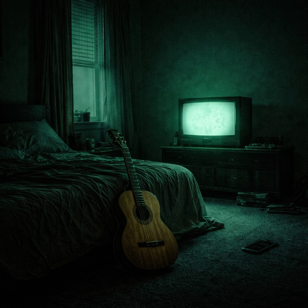 Slow tempo, Minimal arrangement, Dry nylon flamenco guitar with muted, percussive picking, Sparse low cajón, very restrained, Occasional quiet palmas, tight and close-mic’d, Voice slightly rough but controlled, Atmosphere: late night room, dim light, cold air, Very little reverb, Intimate and close, No big chorus lift, Repetition builds tension instead of energy, Keep dynamics narrow and steady, Avoid festive or traditional bright flamenco feeling, Keep it dark, dry, and psychologically tense
