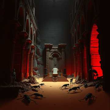 A brutal modern deathcore epic: downtuned 8-string guitars churn through chaotic riffing, relentless blast beats, and seismic breakdowns punctuated by catastrophic slam sections, A symphony and full choir imbue the track with majestic, cinematic grandeur, Vocals veer from guttural growls and pig squeals to demonic shriek highs, alternating for brutal dynamic shifts, Technical shred solos add manic virtuosity before explosive low-end drops, with orchestral brass, strings, and epic choirs constant