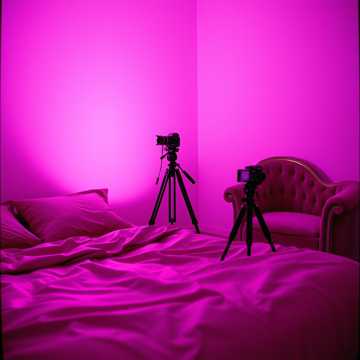 ultra-sensual cinematic night photography, dimly lit underground club or private bedroom after hours, heavy neon cyan-magenta-purple glow with deep teal shadows, pulsing RGB rim lighting and volumetric god rays cutting through haze and smoke, sweat-glistened oiled skin catching glossy highlights, slow-motion body rolls and arched spines, reflective latex and sheer lingerie clinging to curves, intimate low-angle close-ups emphasizing collarbones, hips, and dripping sweat trails, shallow depth of field with creamy bokeh, high contrast moody color grade — vibrant magenta/teal split tones with warm orange skin undertones fading to cool darkness, chromatic aberration and subtle lens flares from strobe pulses, hyper-detailed skin texture with visible goosebumps and pores, erotic fashion editorial meets dark R&B music video aesthetic, inspired by late-night housebass/Night Bass visuals, filthy seductive tension, bodies locked in rhythmic grind, dreamlike yet raw intensity, shot on Arri Alexa