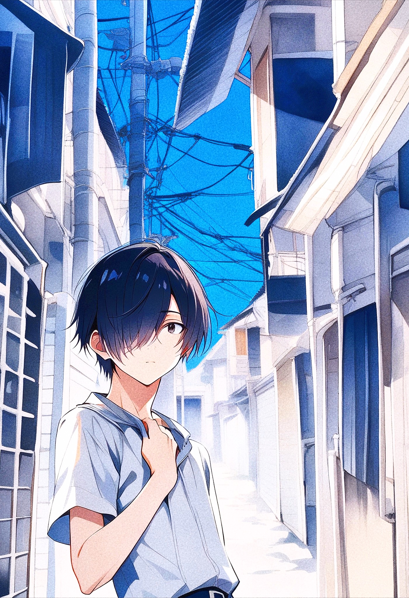 Male vocals, mid-to-high range, dark and expressive, Slightly breathy voice, sung simply and almost monotonously, with restrained and controlled emotion, Pitch slightly higher than mid-range, minimal vibrato, dry and focused delivery, Emotion feels held back, heavy, and internal, never over-expressive, creating quiet tension, Electric guitar–driven arrangement with repeated simple riffs in the low range, Light overdrive to crunch tone, gritty yet clear, with slightly uneven and textured accents, Live drum kit with a steady, weighty beat that supports a dark, forward-moving atmosphere, Tight rhythm section, persistent and grounded rather than energetic, No acoustic guitar, Overall feel: dark youth rock, heavy and restrained, emotionally contained, with pressure building beneath the surface