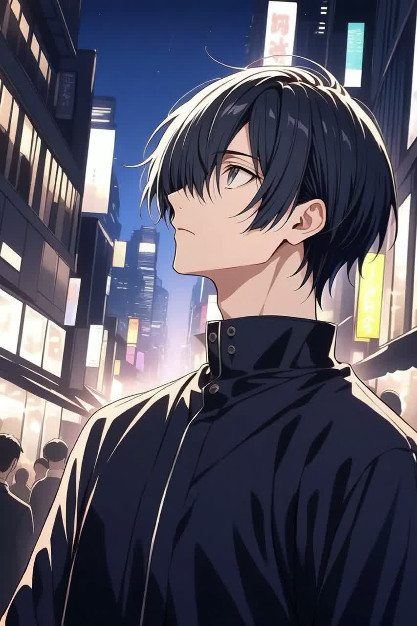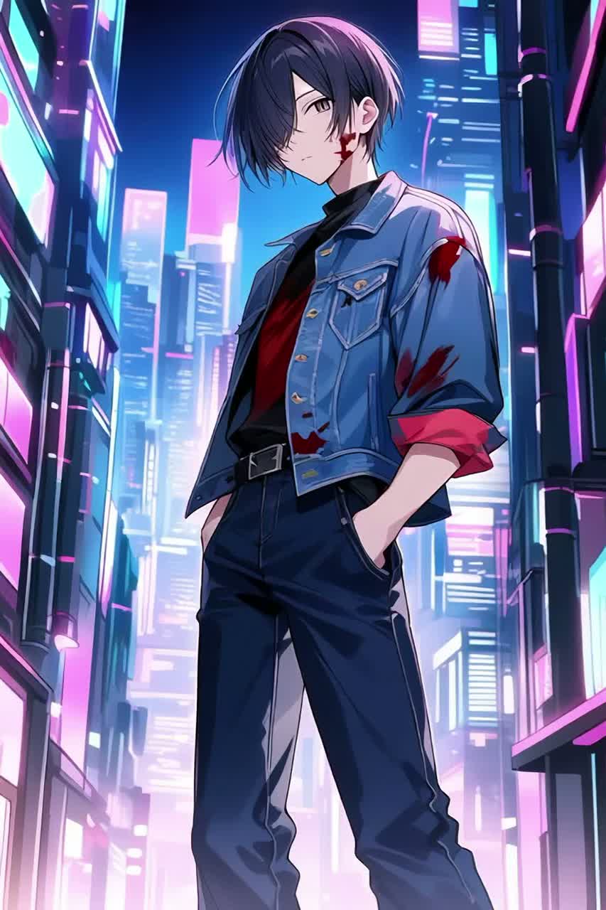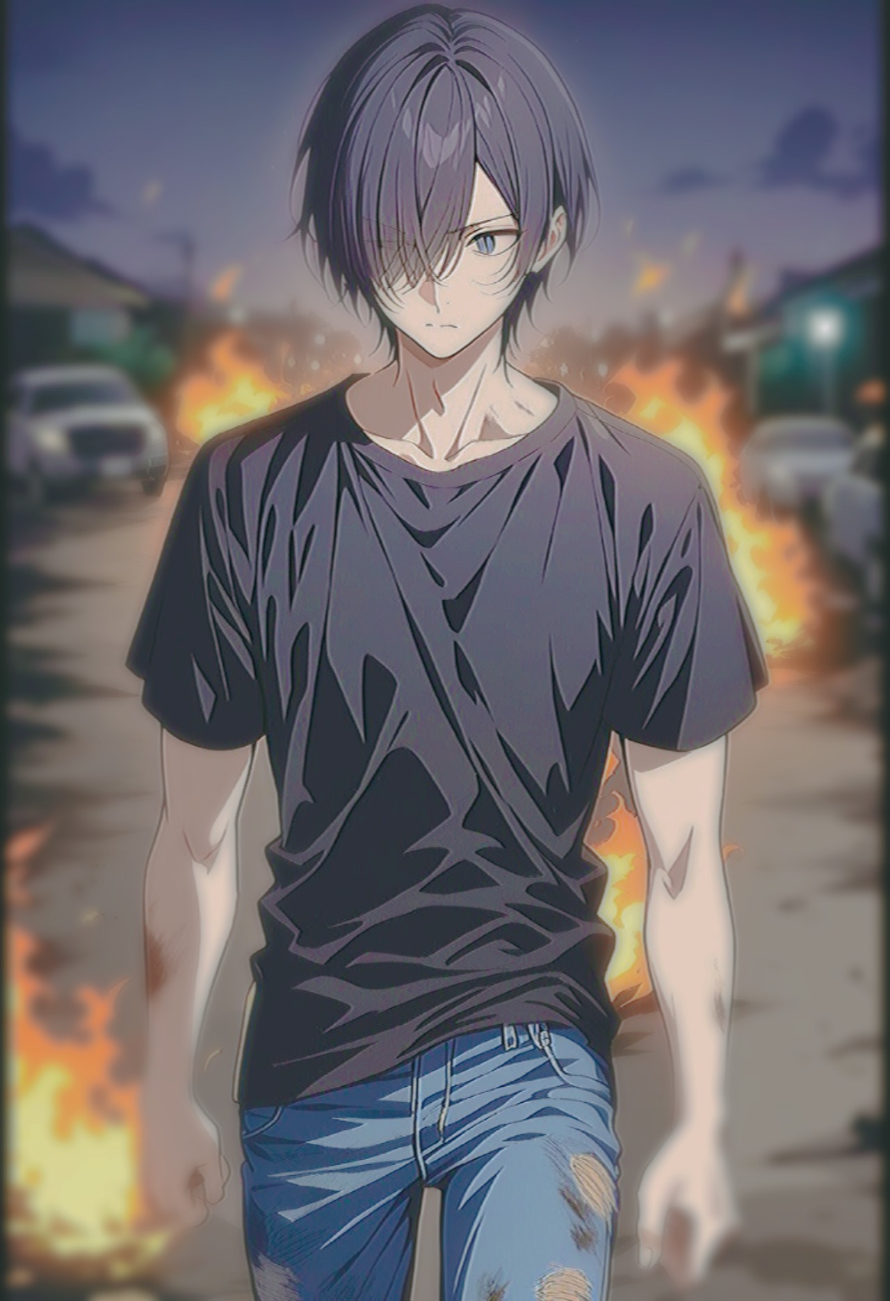 Create a fast modern cinematic track at 150 bpm featuring extremely high-pitched, piercing male vocals upfront, ethereal, delicate, expressive with breathy textures, subtle growls, and natural vocal nuances, Lush evolving synth layers, pulsating electronic textures, glitchy granular effects, and booming sub bass with impactful low hits, Urban nights, rainy neon streets, crumbling ruins, swirling fog and shadows, Chaotic winds, flickering lights, burning skies, Quick transitions, relentless momentum, immersive futuristic sound design, layered male harmonies, robotic vocal processing, multidimensional textures, Sharp electric guitar riffs subtly layered for tension, cinematic energy, dark beauty, melancholy, jealousy, anger, love, destiny, rebirth, Aggressive yet precise dynamics, tactile sonic detail emphasizing every breath and vocal nuance, high energy, modern and intense futuristic sound