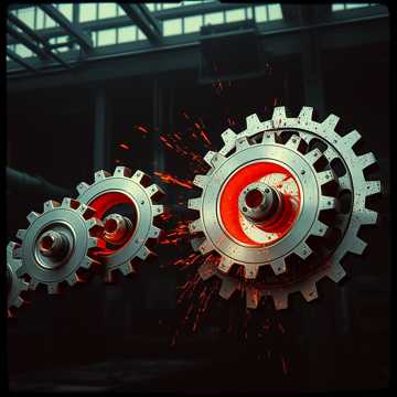 Opens with a bright glockenspiel melody over sparse mechanical noises, As the verse starts, industrial synth layers and distorted textures emerge, The chorus slams with heavy, syncopated drums and forceful beats, keeping an intense tempo while deep bass underpins the sections