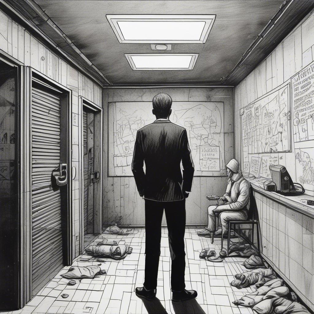 A gritty, authentic Russian prison-style song, A deep, husky male vocal sings the verses with cynical swagger, a choir of rough male voices joins the anthem-like chorus, Raw acoustic guitar, mournful accordion, and a simple walking bassline, The mood is darkly humorous, sarcastic and defiant, telling a story of IT outsourcing scams, The arrangement features whistles and shouts in the instrumental break, The production is lo-fi and raw, blending singing and spoken word