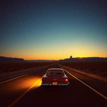 Acoustic-driven rock with twangy electric guitar accents, steady mid-tempo rhythm (90–100 BPM), warm male vocals with a touch of gravel, storytelling lyrics about road trips, open skies, and fleeting moments, Catchy, rhythmic strumming and simple riffs, light percussion with snare and hi-hat, harmonica or slide guitar flourishes, Emotional arc: playful and free, evoking wide deserts, long highways, and the joy of driving under the stars, Refrains singable, slightly swinging, with natural pauses to breathe and reflect