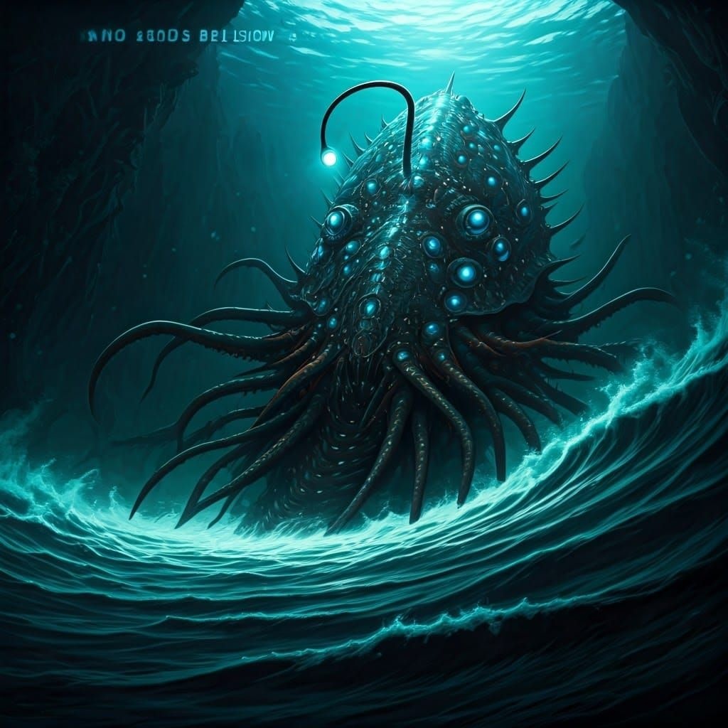 Cinematic horrorcore, Symphonic metal, Thunderous drums, deep orchestral swells, distorted bass, eerie whale-like synths, ghostly choirs, glitching aquatic effects, haunting piano chords
