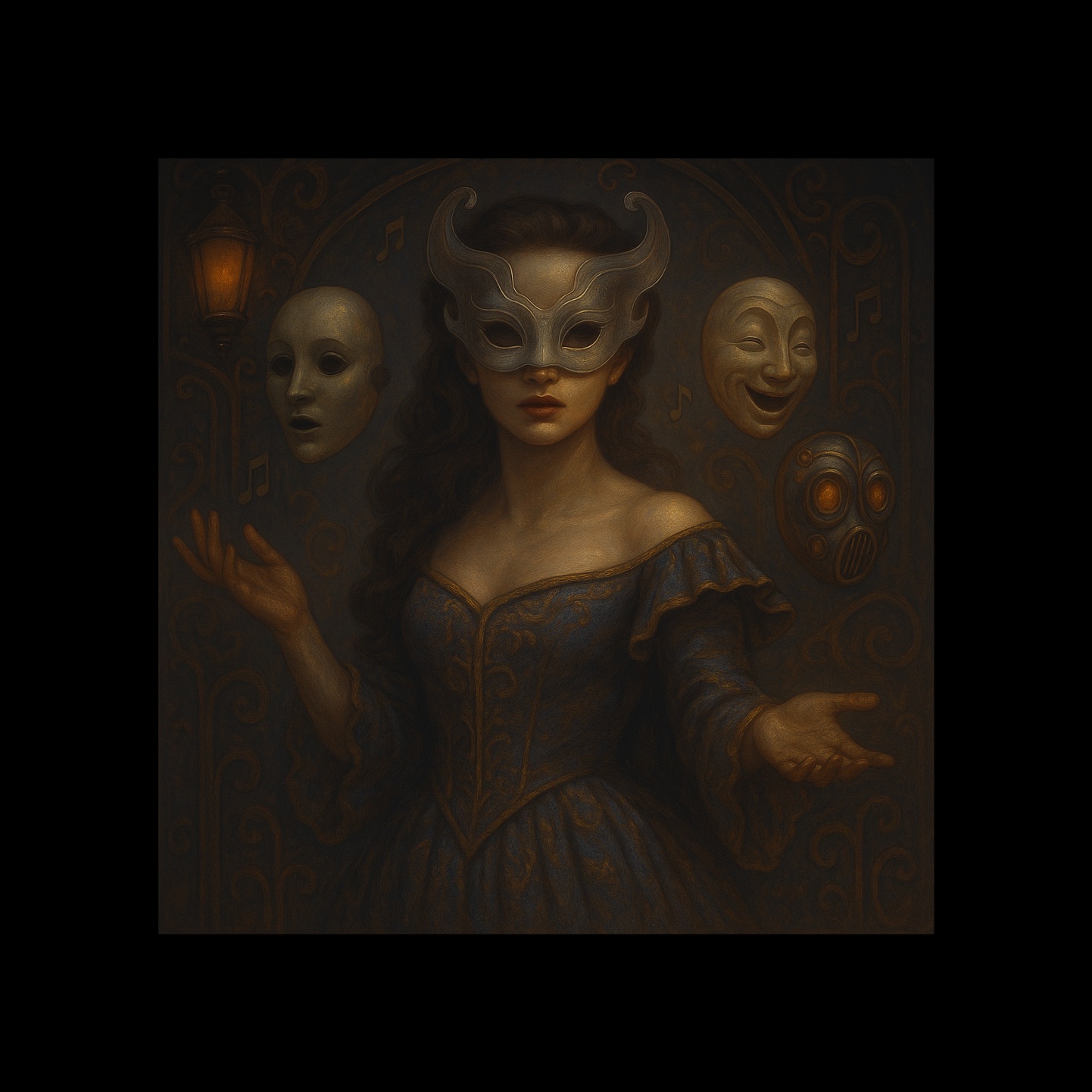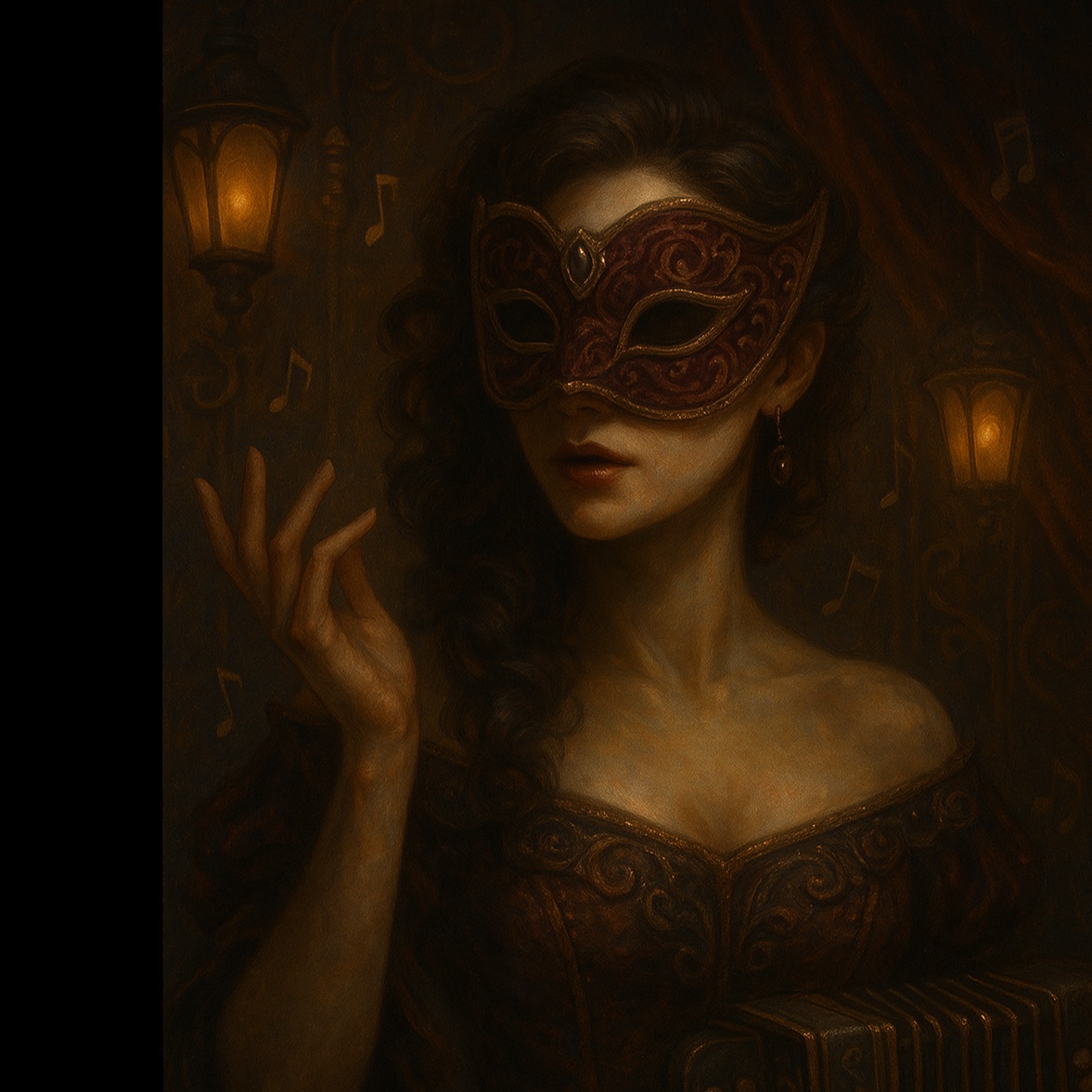 Madame Virella sells enchanted masks that shift voices and souls for one song. A lost diva of many faces, her sound blends opera, artpop, and hypnotic transformations.