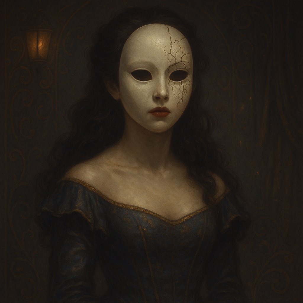 Style: Opera-artpop, dark cabaret undertone, hypnotic trip-pop pulse, cinematic strings, harpsichord accents, breathy glitch chops, vocal morphing between mezzo-soprano opera and intimate whisper pop, choir swells, 92 BPM half-time feel, dramatic dynamic builds, haunting hook, elegant but sinister, Vocal notes: Lead female voice with frequent timbre shifts, occasional doubled low octave
