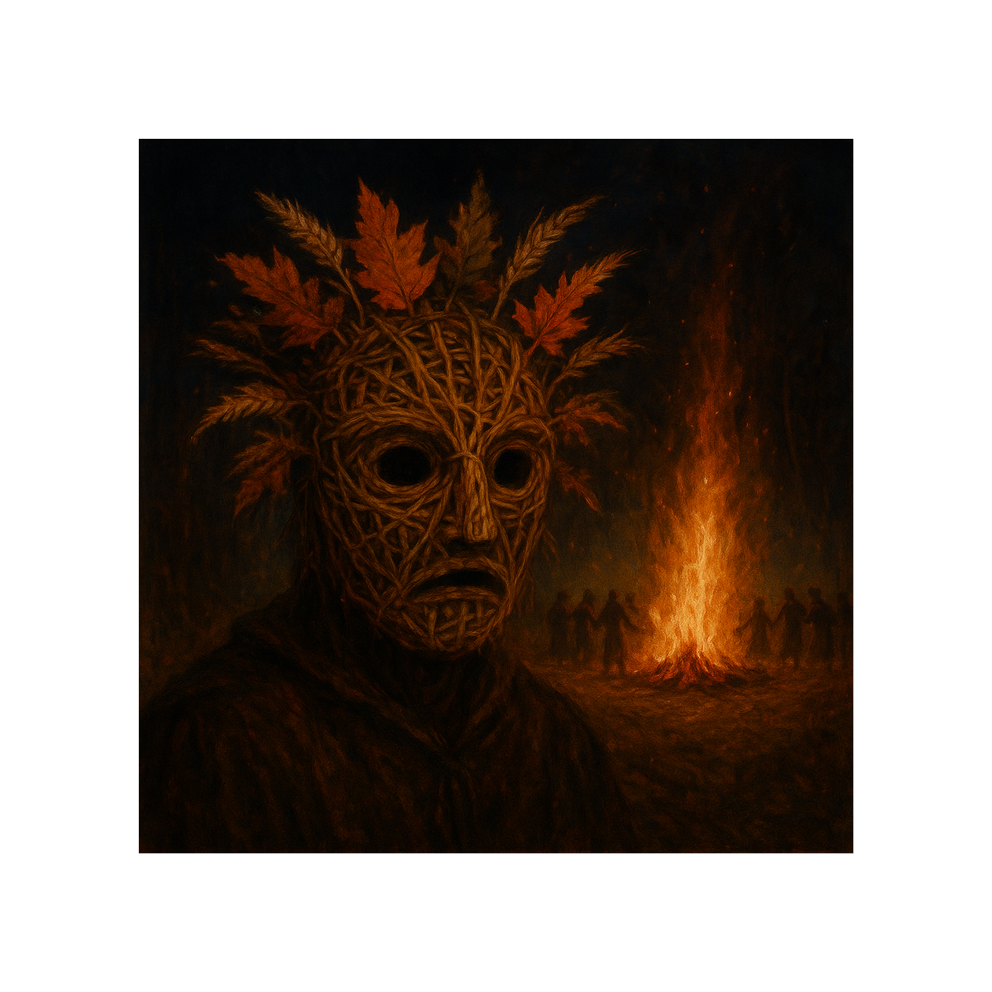 A folk × pagan ritual piece at 90–100 BPM, led by brooding dudelsack melodies and haunting nyckelharpa lines, Tribal percussion—with frame drums and handclaps—grounds the rhythm, while a deep, choral texture rises underneath for a mystical, ceremonial atmosphere