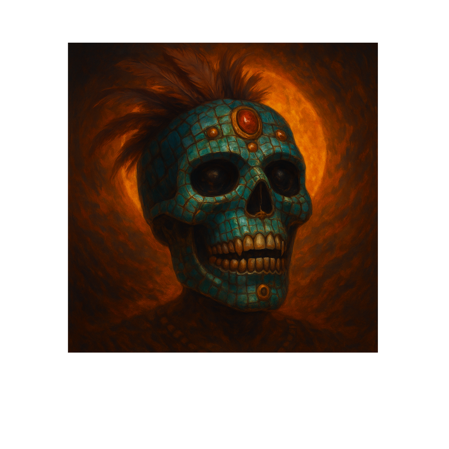 The track opens with deep tribal drums, rattles, distant conch shell, and low ceremonial chanting swelling in intensity, Dense layered conga and djembe rhythms drive the 4/4 psytrance groove as heavy bass and dark pads underlie the cinematic atmosphere, High-pitched flute and rattles add eerie accents atop hypnotic build-ups, Vocals are deep, resonant, and commanding, shifting between solemn narration, intense ritual invocations, and harmonic tribal chants, all drenched in echo/reverb, Verses maintain heavy percussion, bass, and ritualistic chanting, while choruses amplify with harmonic chants and thicker textures, The bridge intensifies with energetic chants before the final chorus, The outro slows to faint conch shell and ritual whispers, fading into atmospheric depth