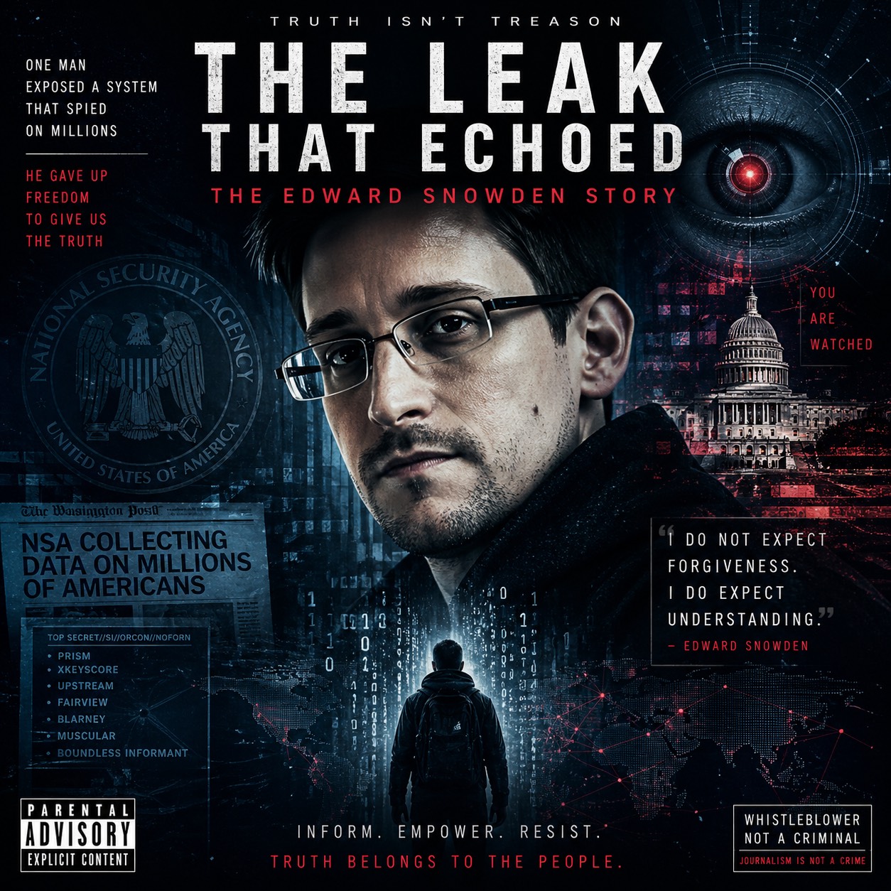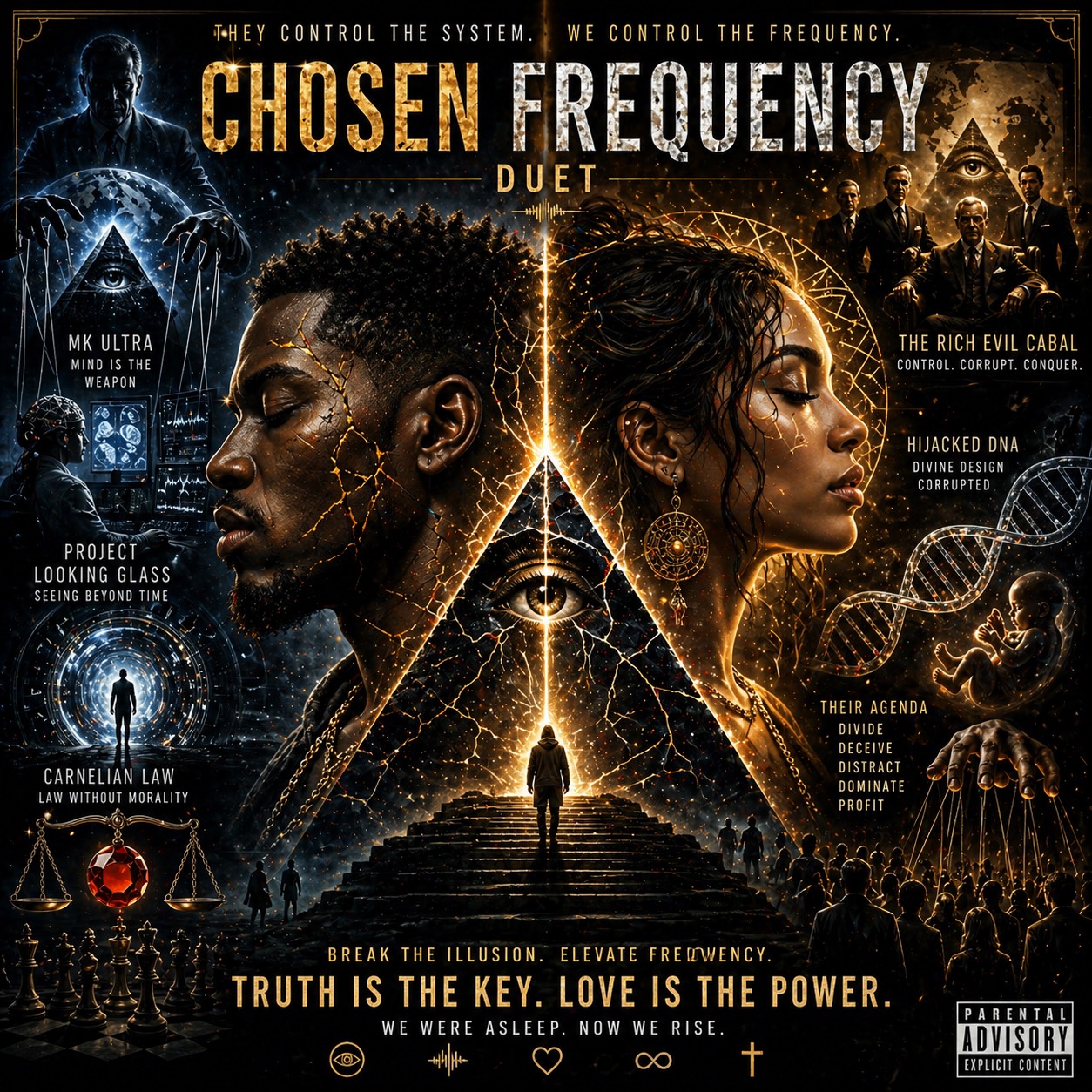Cinematic Conscious Rap / Dark Documentary Hip-Hop, 90 BPM, Key C Minor, Deep Sub Bass, Minimal Piano Motif, Low Strings, Typewriter FX, Glitch Atmosphere, Boom-Bap + Trap Hybrid Drums, Male Lead Vocal (calm, authoritative storytelling), Female Ethereal Background Vocal (bridge), Spoken Word Intro, Tension Build into Anthem Chorus, Dark Investigative Mood, Clean Modern Mix