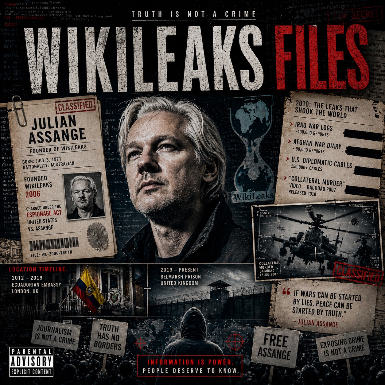 Cinematic Conscious Rap / Investigative Hip-Hop, 90 BPM, Key C Minor, Deep Sub Bass, Typewriter FX, Low Strings, Glitch Atmosphere, Boom-Bap + Trap Hybrid Drums, Spoken Word Documentary Intro, Male Lead (calm, authoritative), Female Ethereal Bridge, Dark Tension Build, Clean Modern Mix