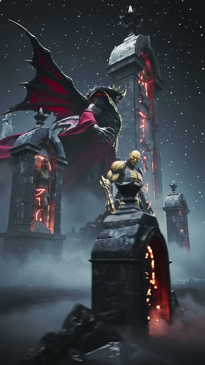 A gothic metal piece at a slow tempo unfolds with mournful distorted guitars and deep, resonant male vocals, enriched by multi-layered choir backing for a grand, otherworldly atmosphere, Echoing keyboards weave throughout, heightening the haunted, seductive, and melancholic mood