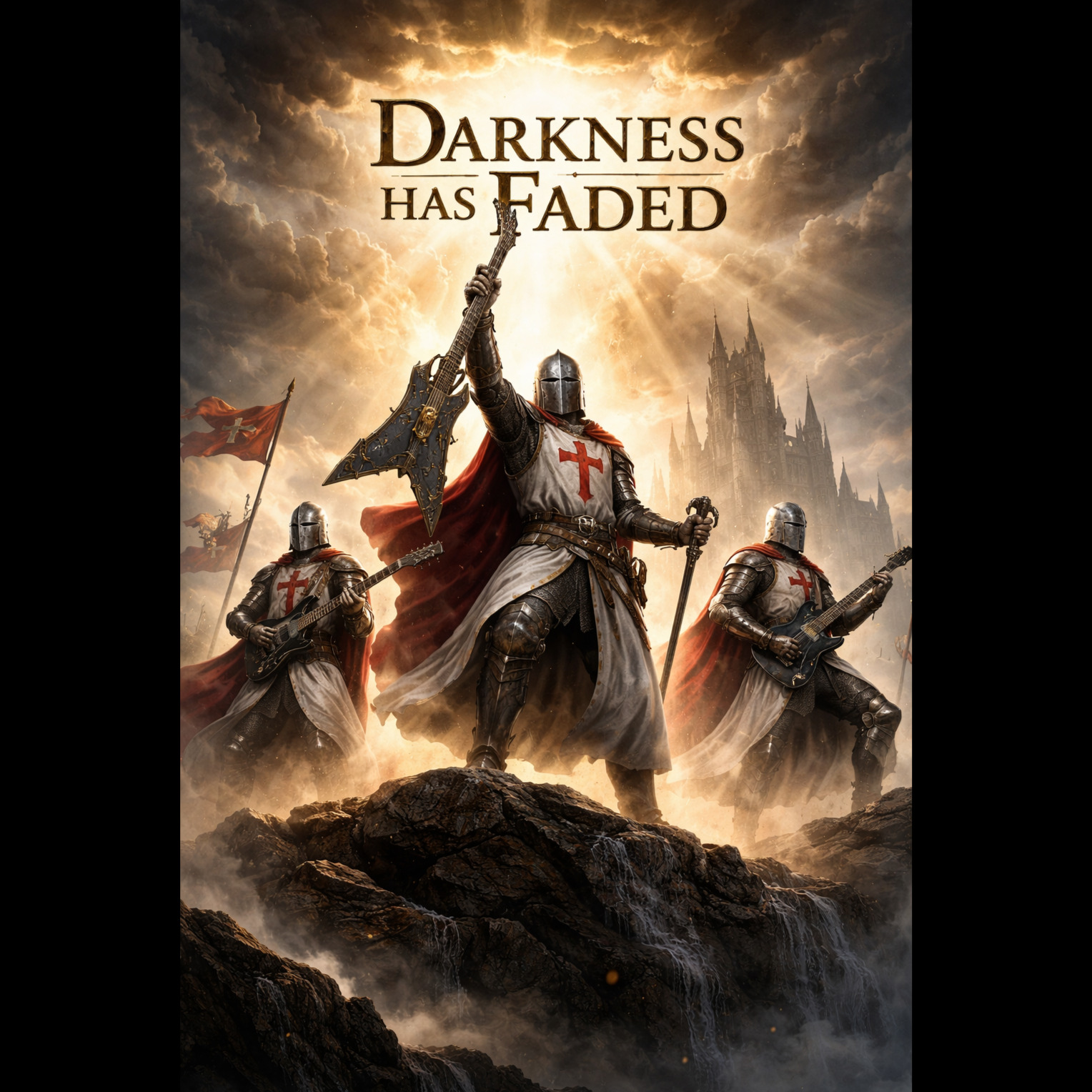 Anthemic Christian hard rock track with a high-energy, cinematic production style, The song features heavy, distorted electric guitar riffs, a driving mid-tempo drum beat with prominent snare hits, and a thick, layered bassline, The arrangement includes dramatic orchestral elements such as soaring strings and atmospheric synth pads that build tension, The lead male vocals are powerful and gritty, utilizing a wide range from baritone verses to soaring, belted tenor choruses with significant vocal compression and slight reverb, Harmonized backing vocals and a large choir-like ensemble provide a massive, congregational feel during the choruses, The structure follows a standard verse-chorus-verse-chorus-bridge-chorus format, characterized by dynamic shifts between quieter, brooding verses and explosive, wall-of-sound choruses, The mix is polished and modern, emphasizing a wide stereo image and high-impact transients