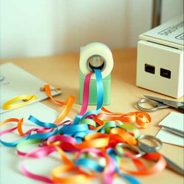 Lyrics describe classroom objects (scissors, glue, desk, paper, tape)