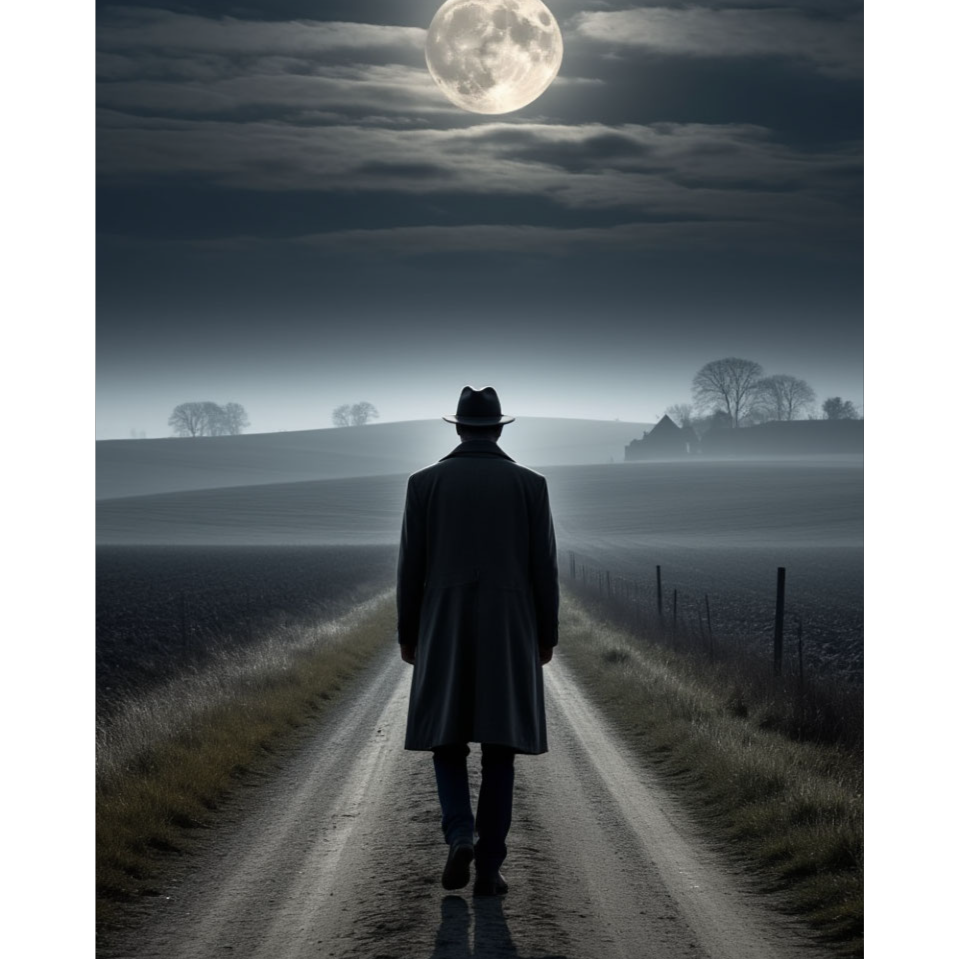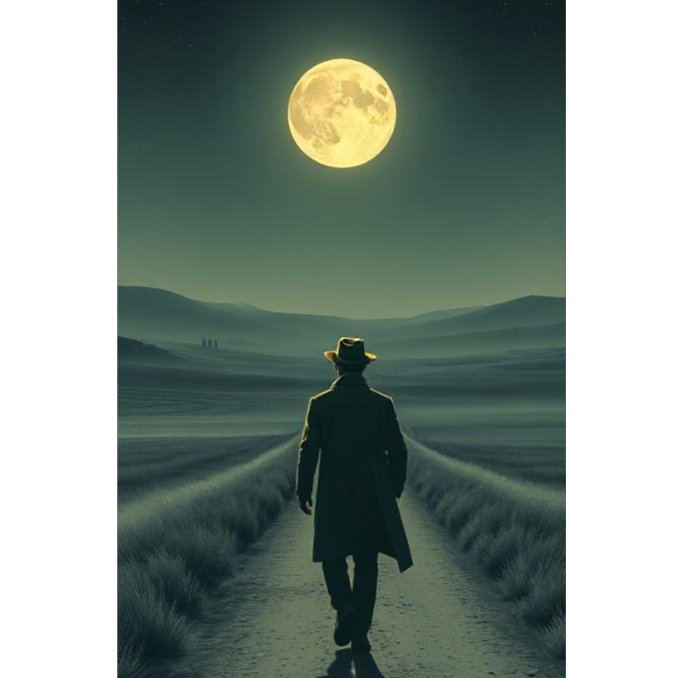 Make an atmospheric rock ballad in the style of the 70s, pace 76 BPM, soft bust of electrihitars with reverb, warm bass, light percussion, Male vocals are deep, emotional, a little hoarse, Inspiration: mystical history, night road, loneliness and illusion of freedom, Smooth transitions between parts, musical pauses to strengthen the atmosphere