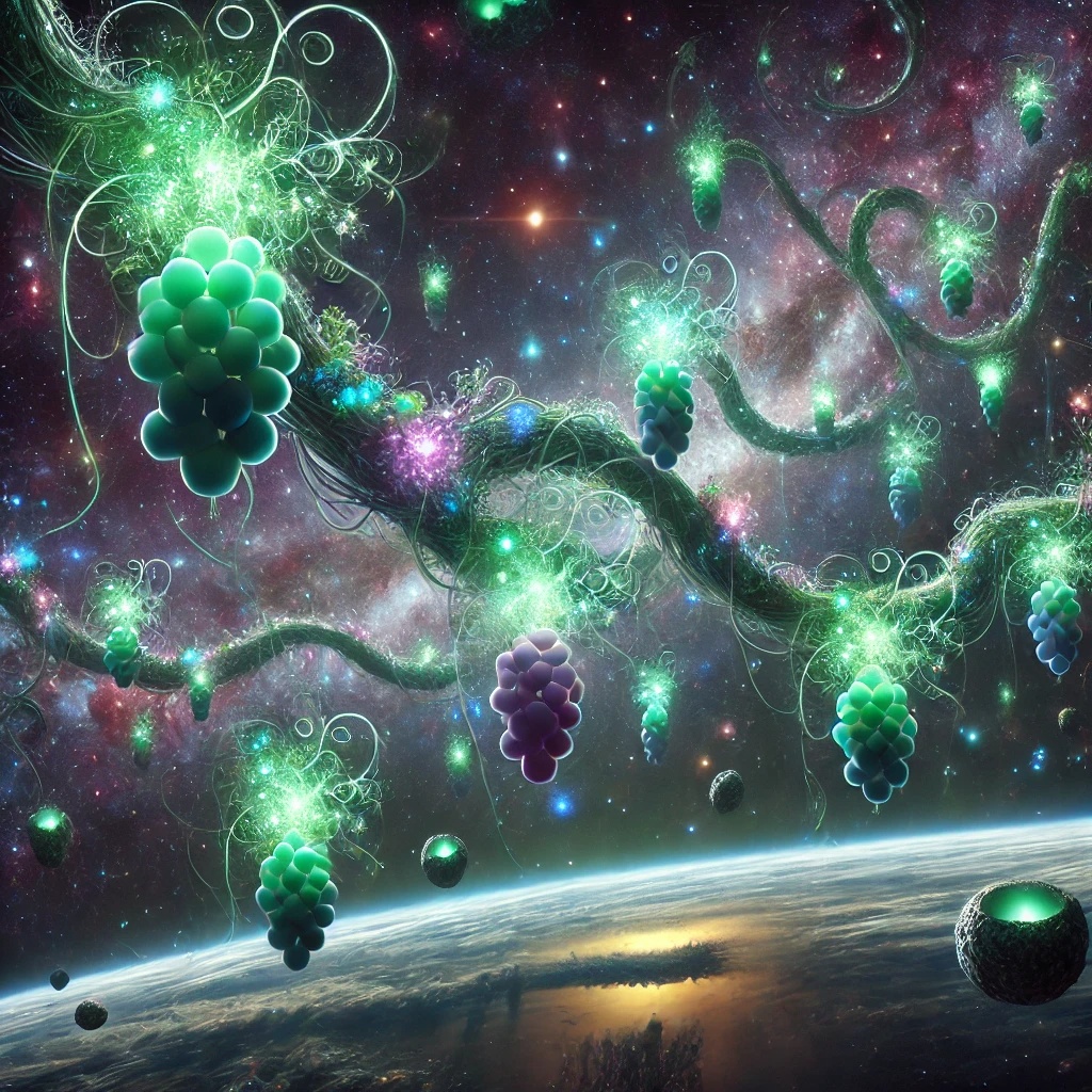 Space Disco x Nu Jazz x Liquid Funk, Ethereal Melody, whimsical counter melody, cosmic strings, synth lead, acoustic rhythm guitar, syncopated modulation, lush pads, vicious jungle riddim