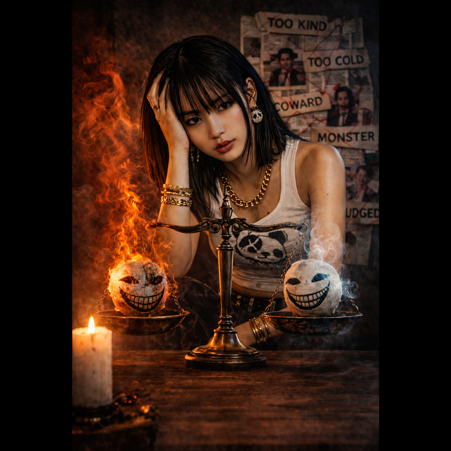 Modern elite lyrical rap with female vocals only, confident female rapper around 23–26 delivering emotionally intense lyrics about an internal psychological battle, Dense multisyllabic rhyme patterns and complex internal rhyme chains with natural organic flow, Verses shift between controlled rhythmic delivery and rapid triple-time cadence bursts, Dark atmospheric hip-hop production with strong low-end energy, cinematic tension builds and explosive hook moments, Smooth transitions between sections, expressive emotional delivery and clear articulation for fast lyrical passages, Chant-like chorus that contrasts with the technical verses, Polished radio-ready mix with dramatic dynamics, layered vocal textures and high replay value, Target runtime around 4–4:30
