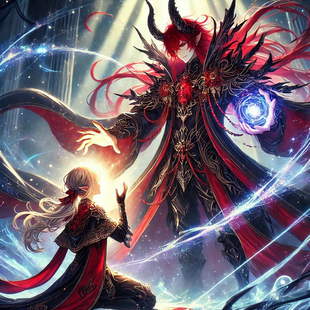 Uplifting and resolute orchestral music for a demon lord’s moment of determination, Steady strings, inspiring brass, bright piano or harp motifs, gentle yet confident percussion, subtle choir, a sense of hope emerging from the darkness—quiet strength, inner renewal, and the beginning of a new resolve, Majestic yet warm, carrying the spirit of a ruler choosing their own destiny