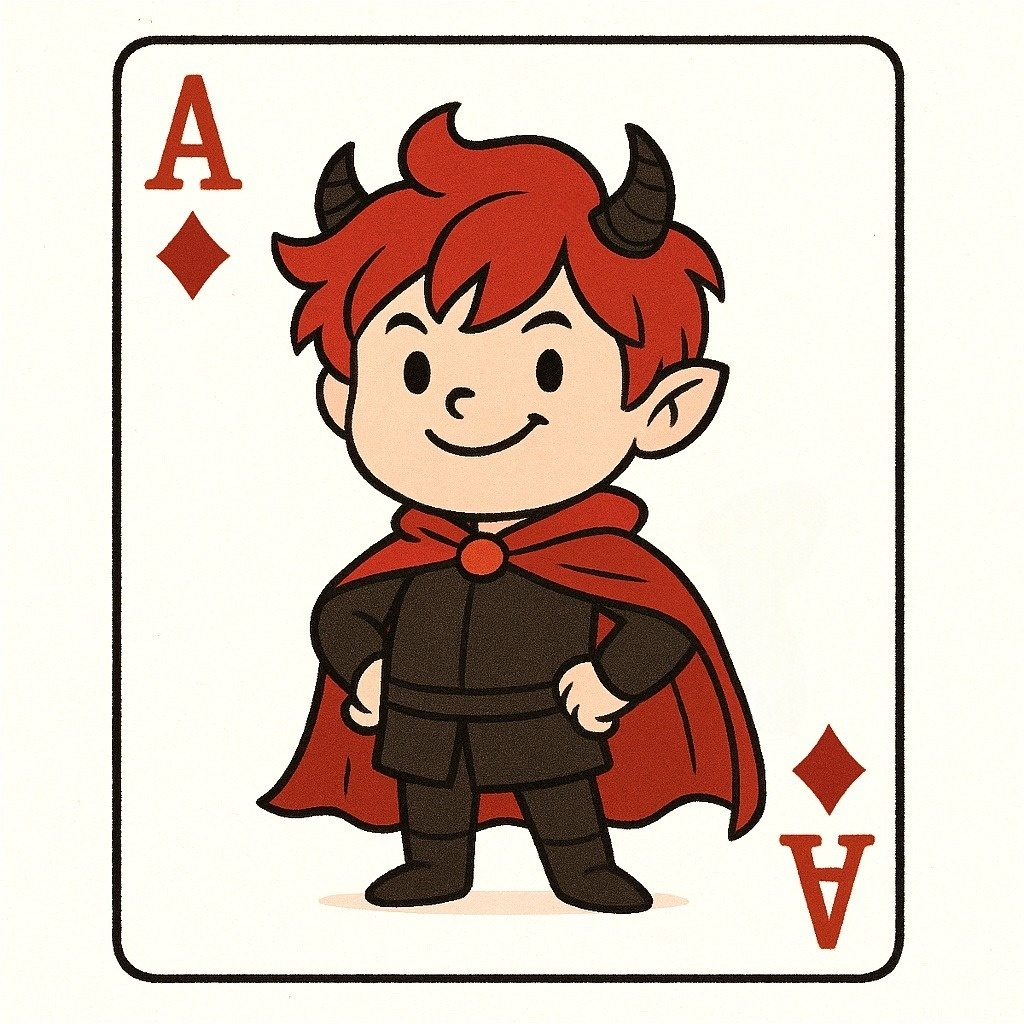 A lively and playful casino-inspired track with jaunty brass, bouncing double bass, and cheerful ragtime-style piano, Bright percussion and handclaps keep the rhythm festive, while occasional mischievous flourishes hint at the demon lord’s theatrical flair, The mood is colorful, humorous, and full of cheeky charm—like a magical casino where even the dark lord himself deals the cards with a grin