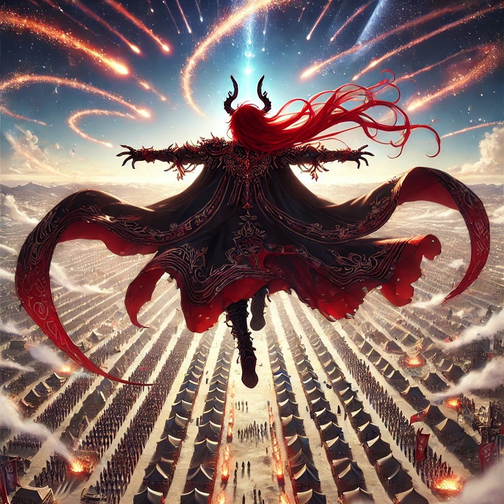 Massive and explosive orchestral music for a demon lord unleashing a magically accelerated meteor from high above, Thunderous percussion, roaring brass, intense strings, distorted synths, and seismic sound effects create a sense of unstoppable force and catastrophic impact, The mood is brutal, awe-inspiring, and filled with a chilling sense of calculation—pure destructive power guided by cold intellect