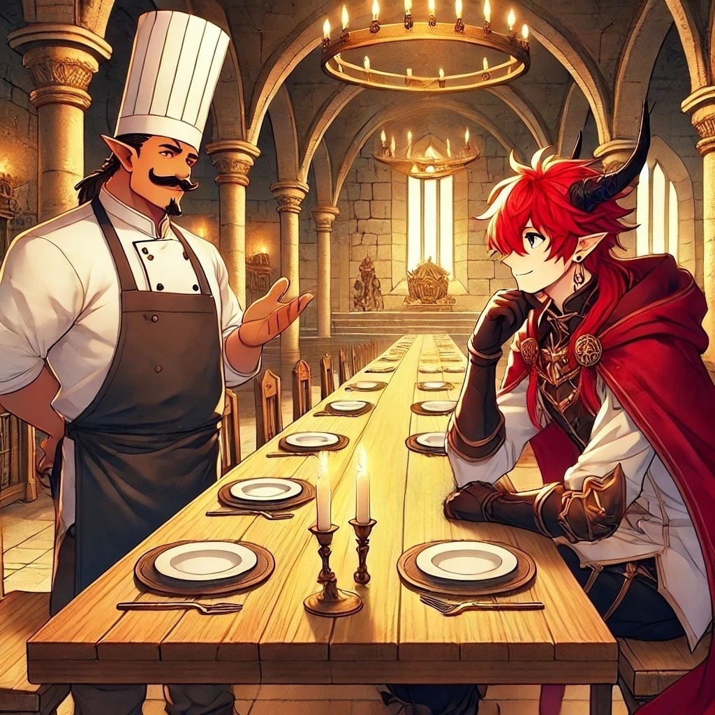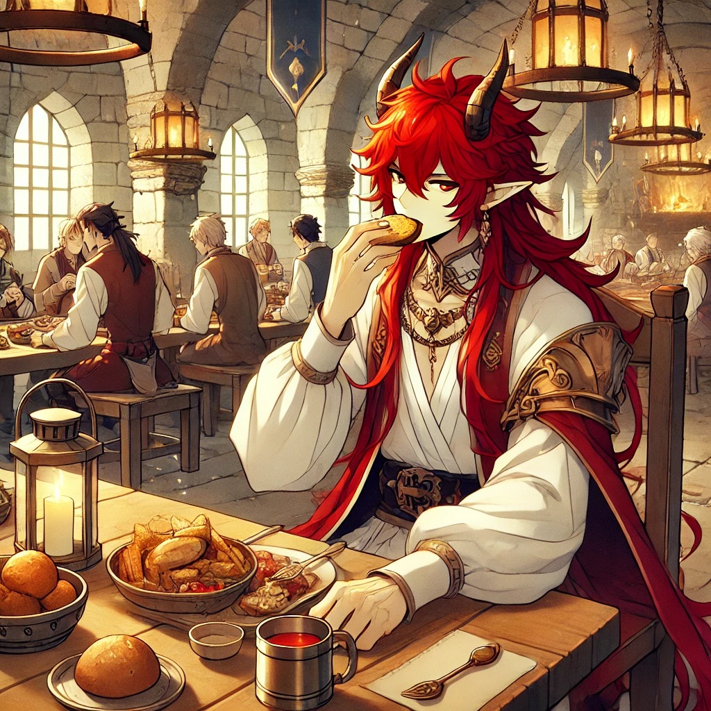 Playful and slightly mischievous orchestral music for a demon lord enjoying a meal in their grand castle dining hall, Bouncy strings, whimsical woodwinds, quirky percussion, and a touch of dark, magical flair create a lively and unusual atmosphere—equal parts regal and comedic, with a hint of fantasy mischief, Perfect for a villain’s quirky mealtime scene