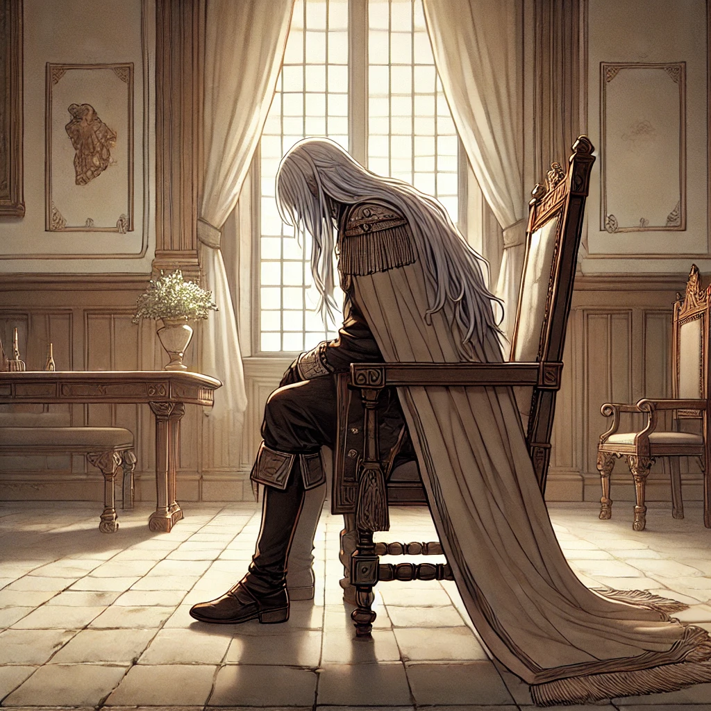 Gentle and melancholic orchestral music for the surrender of a once-proud kingdom, Soft strings, mournful brass, distant piano, and subtle choir evoke the sorrow and resignation of a fallen monarch, The mood is bittersweet and dignified, tinged with regret but also with the quiet acceptance of fate—moving the listener to sympathize with a king who has lost everything to a merciless foe