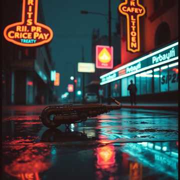 dark orchestral jazz noir, 1940s art-deco, vintage analog recording, muted brass, haunting strings, underwater reverb