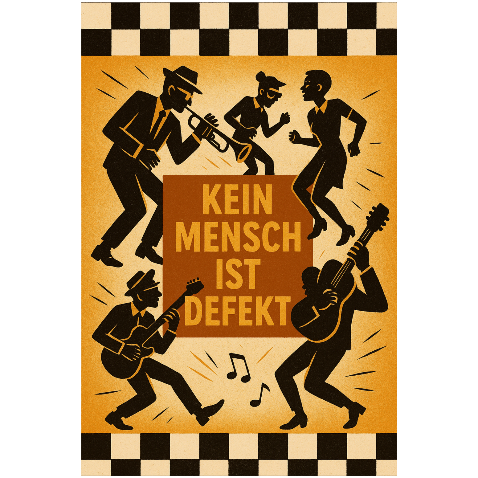 Swingy two-tone ska with brass: ~150 BPM, 4/4; guitar upstroke offbeats, light shuffle hi-hat, walking bass, tight snare on 2&4, organ bubble, punchy horn stabs, crowd call-and-response; arrangement: Intro → Hook → V1 → Pre → Hook → V2 → Pre → Hook → Bridge (call/response) → Break (offbeat count-in) → V3 → Final Hook + Tag; energetic, witty, socially critical, chant-ready, ‑Trap, ‑Drill, ‑Dubstep, ‑Big-Room EDM, ‑Trance, ‑Hyperpop