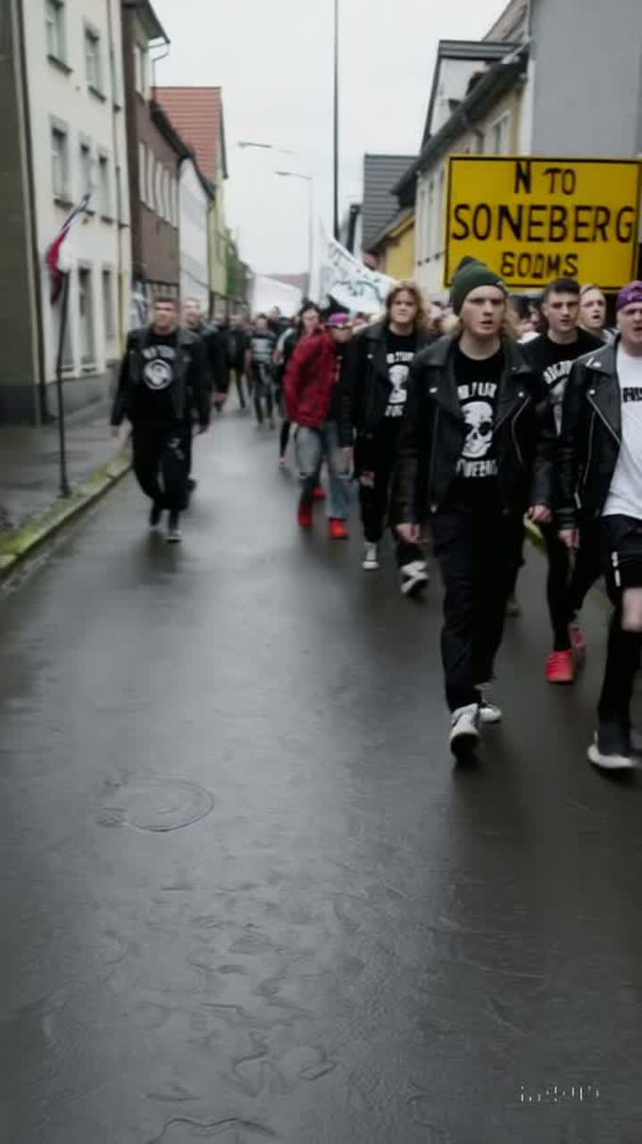 90er Deutschpunk × Ska-Punk, roh & aggressiv, Tempo ~190 BPM, 4/4, Drums: schnelles D-Beat/Skate-Punk, kurze Fills in Refrains, Double-Time im Final, Bass: Pick, treibende 8tel, in Ska-Parts simple Walk-Ups, Gitarren: Gtr1 verzerrte Downstrokes/Powerchords; Gtr2 clean Offbeat-Upstrokes in Pre/Breakdown, Bläser: Trompete+Posaune kurze Stabs, Hook-Dopplungen, Vocals: männlich, rau, Shouts; Gang-Shouts „Aaaaargh!“ statt „Ohoho“, Struktur: Intro – V1 – Pre – Chorus – V2 – Pre – Chorus – Ska-Break (halbiert) – Double Chorus – Outro Stabs, Mix: trocken, Snare vorne, Gitarren hart L/R, Bläser breit, Crowd-Shouts gruppig, Sprache: Deutsch, Stimmung: wütend, kompromisslos, antifaschistisch, mitsingbar, ‑Schlager, ‑Ballade, ‑Oper, ‑Dubstep, ‑Trance, ‑Big Room, ‑EDM, ‑Trap, ‑Drill, ‑Cloud Rap, ‑Metalcore, ‑Death Metal, ‑Jazzballade, ‑Orchester-Pop