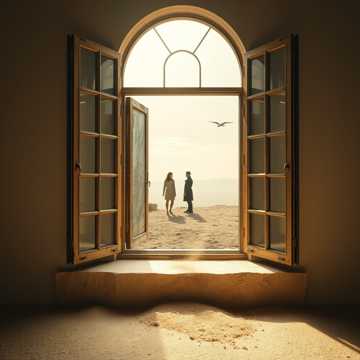 Epic ethereal folk duet, 85 BPM, breathy female vocal, deep echoing male vocal, acoustic guitar, massive cathedral reverb, slow crescendo, building to an explosive orchestral climax, spiritual awakening, cinematic, happy and melodious and cheerful voice