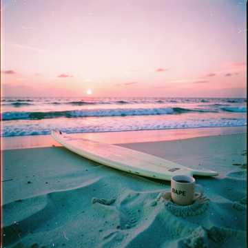 Mood: Warm and hopeful but slightly tired, salty skin, tired legs, early morning coastal drive, board on the roof, chasing waves