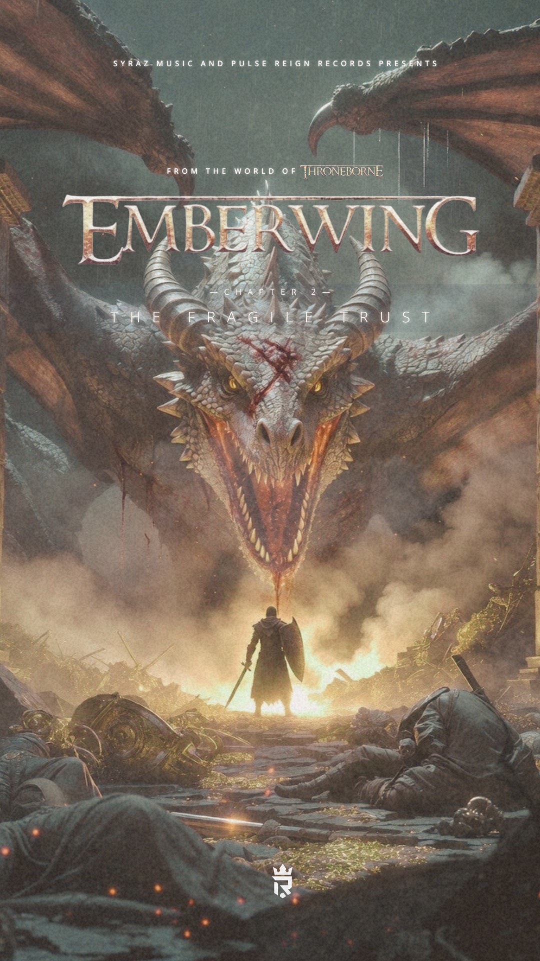 Starts with a slow and mysterious intro using deep strings, low brass, and distant war drums, Style: Epic, cinematic, orchestral, heroic, dramatic, emotional, powerful, movie soundtrack, Dragon roars, cinematic sound effects, dark fantasy atmosphere, epic, aggressive, male voice