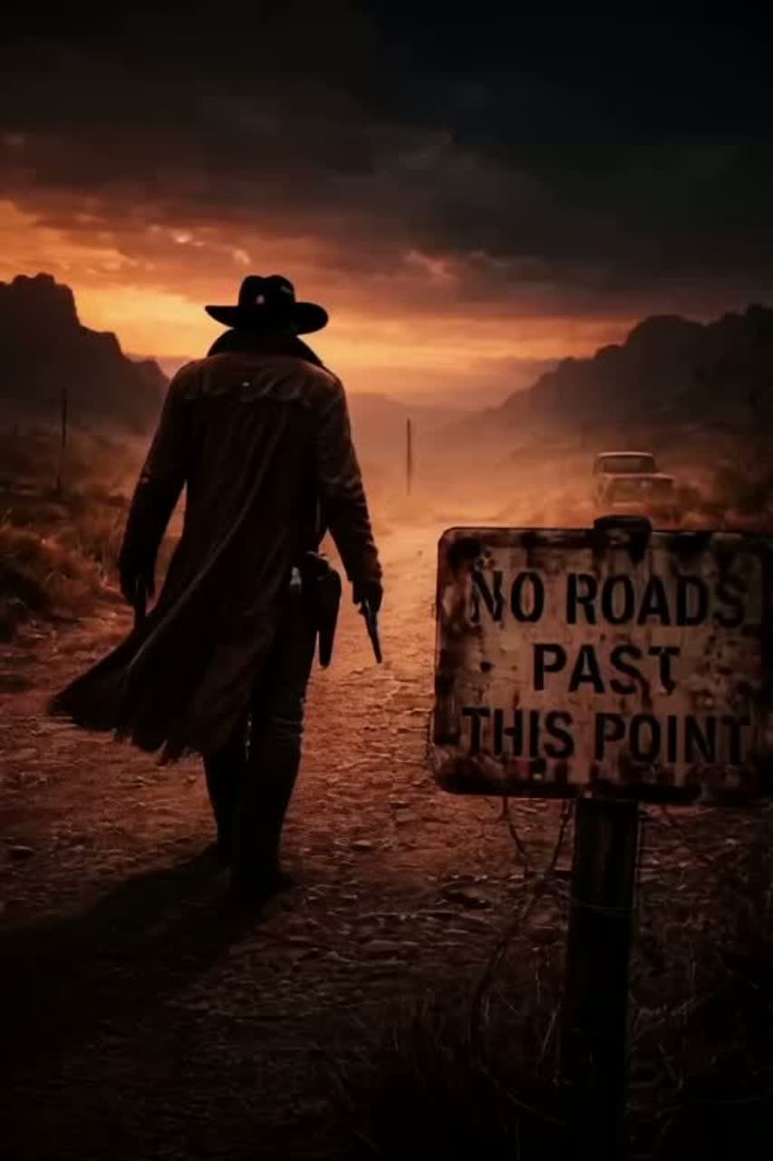 Spaghetti western soundtrack fused with dark phonk, Slow tempo, cinematic and menacing, Whistling intro, sparse acoustic guitar, dusty percussion, deep distorted phonk bass, Male vocal, low and restrained, almost spoken, Themes of desert justice, revenge, outlaw fate, Gritty, minimal, haunting