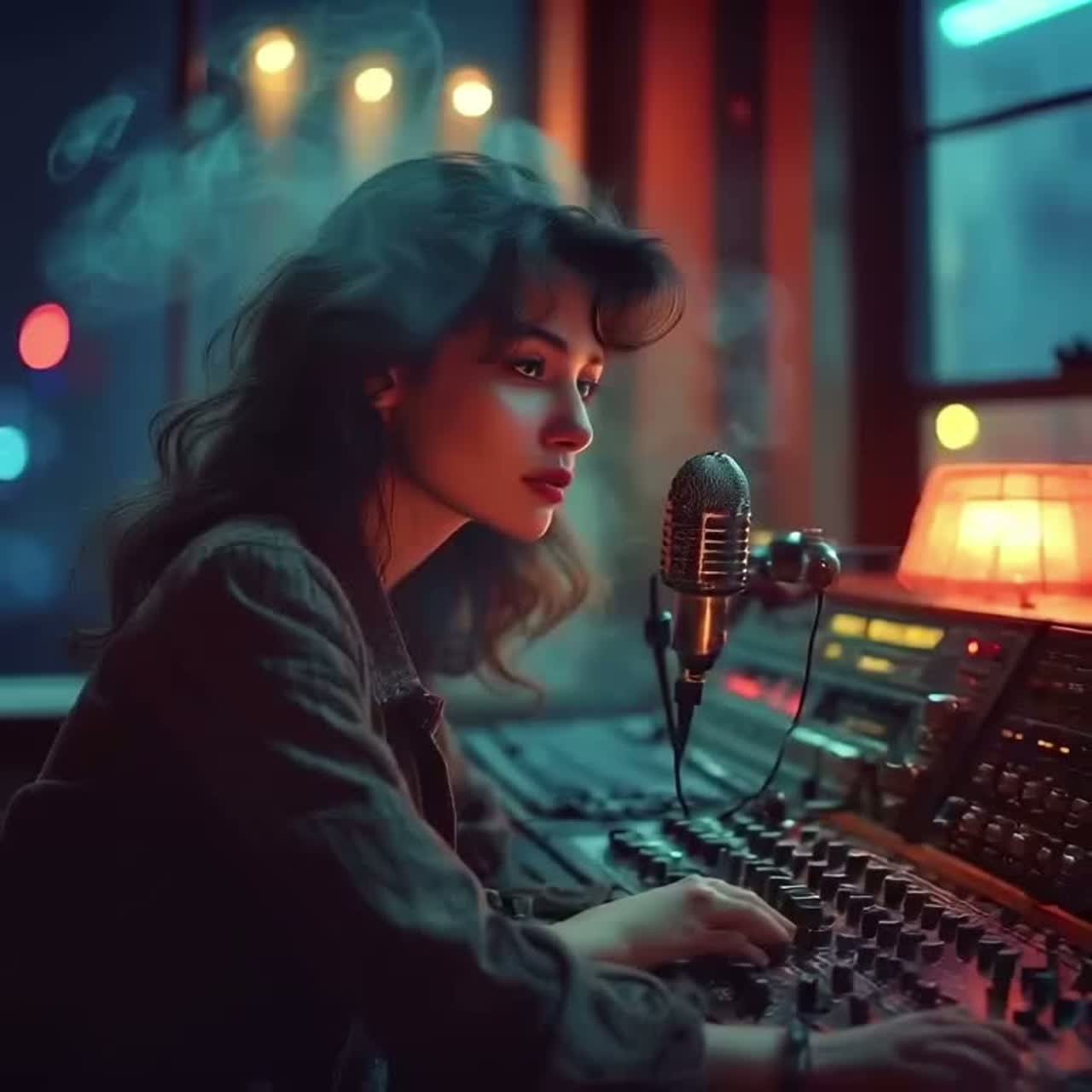 Slow, teasing late-night radio song with intimate female vocal, Sultry but restrained delivery, close-mic, soft smiles in the voice, Very slow tempo (≈60–66 BPM), Minimal instrumentation: gentle electric guitar swells, soft bass pulse, light brushed percussion or heartbeat-style kick, Wide space, long pauses, warm analog tone, faint radio static, Moody, cozy, seductive without being explicit, Feels like a late-night DJ keeping one listener awake on purpose, Designed for headphones and repeat listens