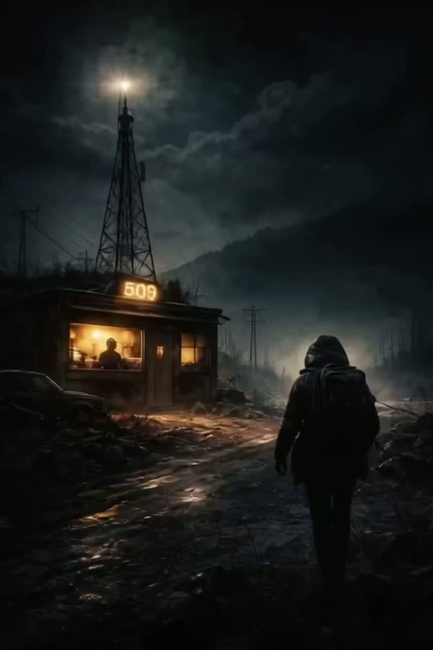1950s doo-wop and atmospheric post-apocalyptic ballad with vintage harmonies, analog radio static, and cinematic storytelling, Male narrator voice like a late-night radio DJ with eerie cosmic undertones about a mysterious signal answering Station 509