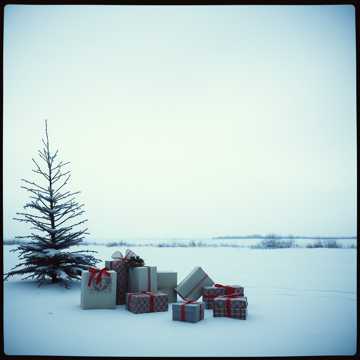 A festive holiday ballad opens with sparse piano and soft pads, underscored by distant bells and metallic chimes for atmosphere, Female vocals, raw and melancholic, glide over gentle acoustic guitar, Subtle Christmas effects—wind, crackling fire, sleigh bells—add wistful texture