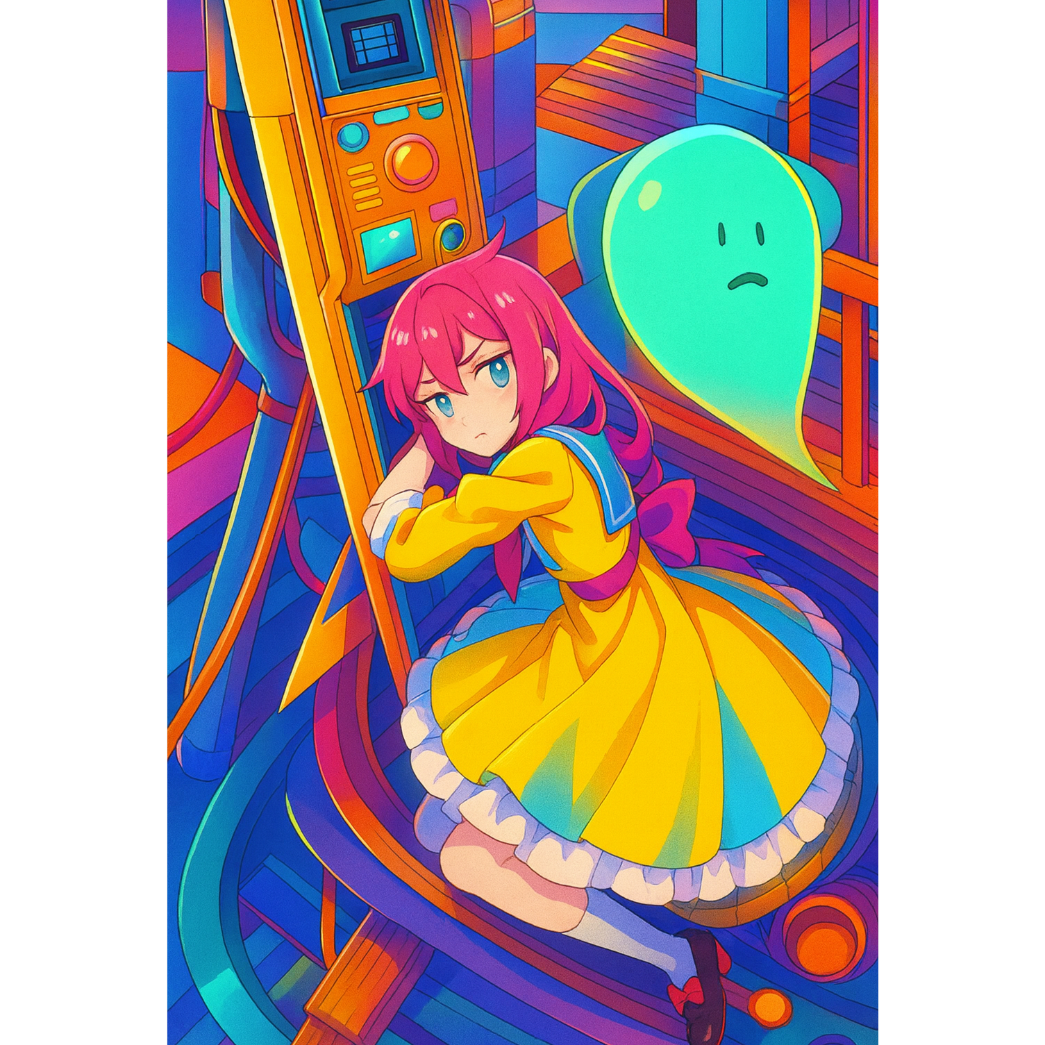 high pitched female vocals, anime style, bass synth, groovy, saxophone