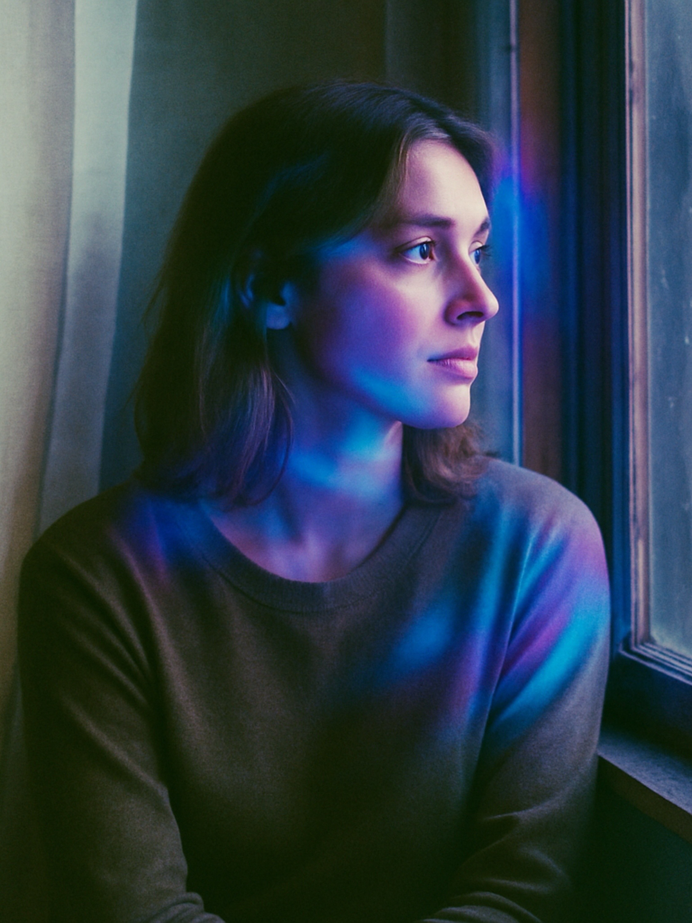 Dreamy synth-pop/indie pop at 90–100 BPM, Verses open with soft kick, light reverb-dusted snare/clap, crisp hats, and lush pads over warm sidechained bass; gentle plucked synths and ambient guitar texture add depth, Intimate female vocals, breathy and close-miced, float over minimal backing, Choruses swell with melodic lead synths, layered harmonies, airy falsetto, subtle delay, and supporting harmonies, A conversational rap bridge strips back reverb for a dry, contrasting feel, Finale features full arrangement—big synth layers, saturated harmonies—culminating in an ambient, echo-laden outro that fades into gentle repetition, Mood glows bittersweet yet hopeful