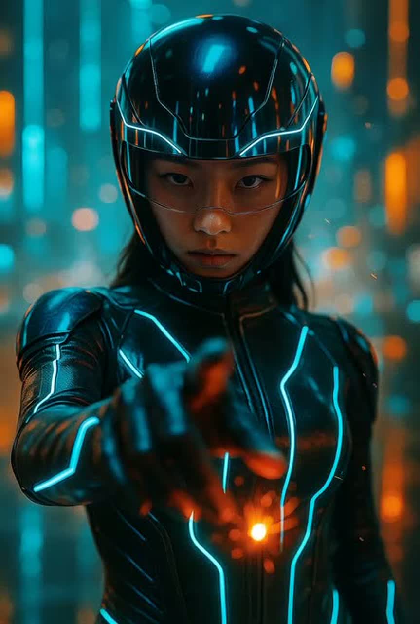 Super Trance / Space EDM Fusion; four-on-the-floor pulse, massive trance synth layers, deep sub-bass, cosmic arpeggiators; euphoric, emotional, interstellar; tempo 128 BPM; explosive build-ups and robotic drops; shimmering plucks, mesmerizing percussions, cute melodic blips; full-spectrum stereo width; female lead (nasal, cool, rhythmic) with robotic harmonizers; feeling of traveling through space at light speed, Use super-bright synths, huge risers, and space-explosion FX (reverse cymbals, white-noise sweeps, pulsar whooshes), Alternate between emotional breakdowns with ethereal pads and massive drops driven by side-chained kick and reverb-tailed leads, Keep vocals centered, clean, and slightly robotic