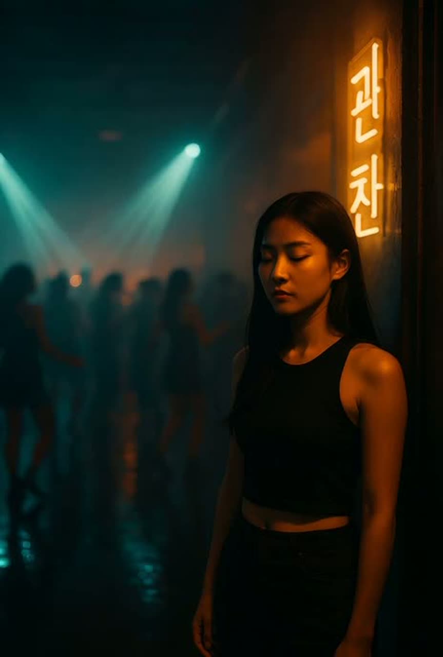 K-House / Deep Club Mix; ultra-high-fidelity analog sound with solid 808 kick, tight sub-bass compression, crisp transient hi-hats; rich stereo detuned pads and rhythmic FM synth plucks; tempo 122 BPM, strong side-chain pump creating club pulse; layered synth stabs with filter sweep and gated reverb; breakdown with tension rise and heavy drop; whispered female Korean vocals, breathy yet confident, dry center with stereo delay tail; atmosphere dark-warm, hypnotic, self-empowered; mastered for deep low-end clarity and wide high-frequency sparkle; [Bridge → Drop → Outro : Extended Fade Out]