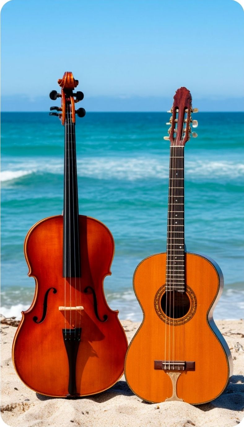 A unique blend of Classical Cumbia and Soviet-era retro style, Rhythmic cumbia percussion with congas, bongos, güiro, and steady bass underpins the groove, Harmonized layers of strings, accordion, and brass create a classical texture, while vintage Soviet-style organ and woodwinds (clarinet, flute) add nostalgic flavor, The melody is lyrical and slightly theatrical, with a touch of melancholy, evoking old Soviet estrada, Mood: playful, retro, and exotic — Latin rhythms meet classical sophistication and Soviet charm
