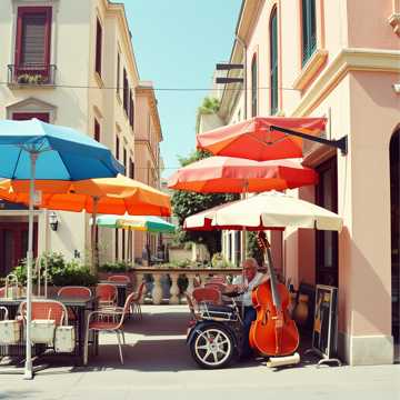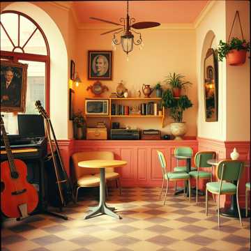 A playful instrumental inspired by vintage European café music, Accordion leads with cheerful phrasing, joined by upright bass, pizzicato strings, and light percussion with brushes, Piano adds jazzy fills, while clarinet and flute provide colorful ornamentation, The arrangement has a charming, whimsical swing with short interludes, evoking retro elegance and joyful nostalgia