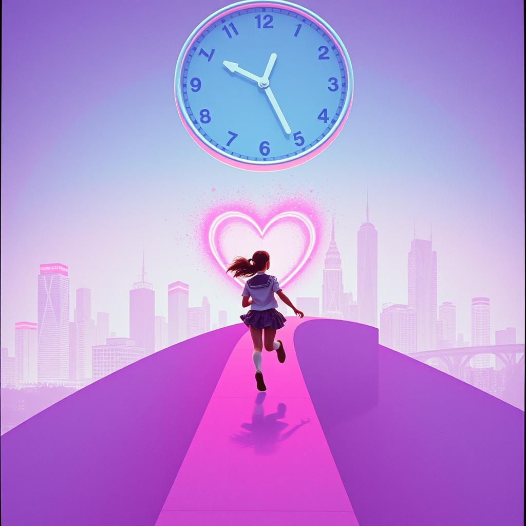 Japanese high-energy alternative pop rock with EDM elements, Female vocals with contrast: low-tone rap verses and cute explosive choruses, Fast tempo, emotional, dramatic time-loop theme, Chaotic structure with drops, fake chorus, and sudden silence, Anime-style, magical girl meets cyberpunk, Dark but catchy, emotional overload, bittersweet love story