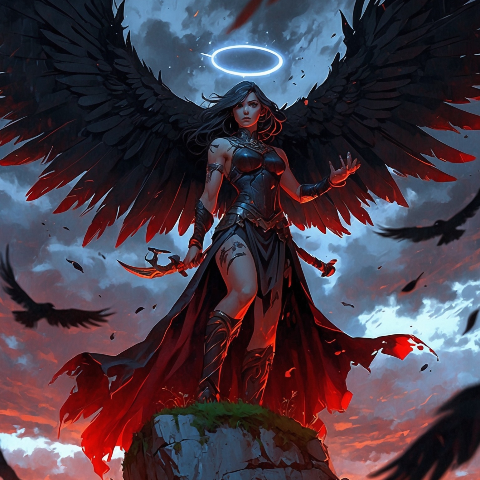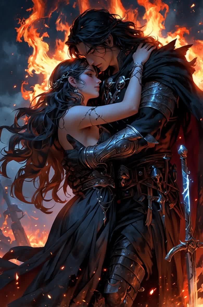 Style: melodic dark ballade mixed with melodic dark power hymn and celtic rock motives, Mood: epic and sad, Singer vocals: deep low strong female voice, Temp: lower than moderate, Perfect mixing studio quality