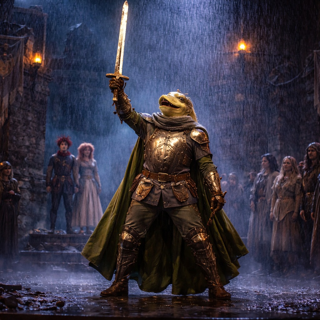 style tags: "noble sorrow, chivalric duty, public ruin, private shame, mythic sincerity, oath-ridden sadness, tragic stature, medieval melancholy";