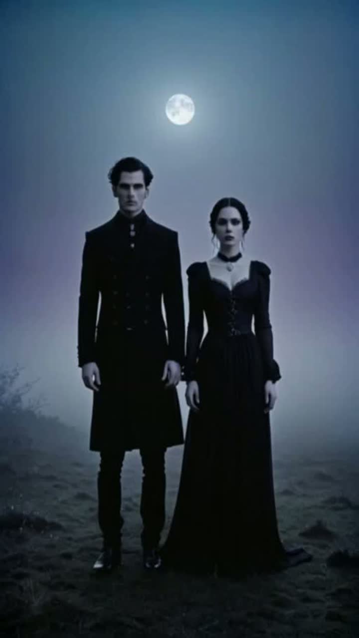 Darkwave / Gothic Duet with two distinct vocal characters: deep, resonant male vocals and soft, sensual female vocals, Atmospheric, cinematic production with ethereal synth pads, haunting strings, minimalistic percussion, and deep bass, Layered choir harmonies in the chorus for a haunting, epic effect, Vocal effects: reverb, slight delay, and subtle modulation to enhance mystery and intimacy, Arrangement: alternating verses between male and female vocals, pre-chorus with call-and-response, and a harmonized, choir-backed chorus, Production should be future-recorded, immersive, and polished, balancing intimacy and gothic cinematic grandeur, Mood: dark, emotional, sensual, hypnotic, and atmospheric
