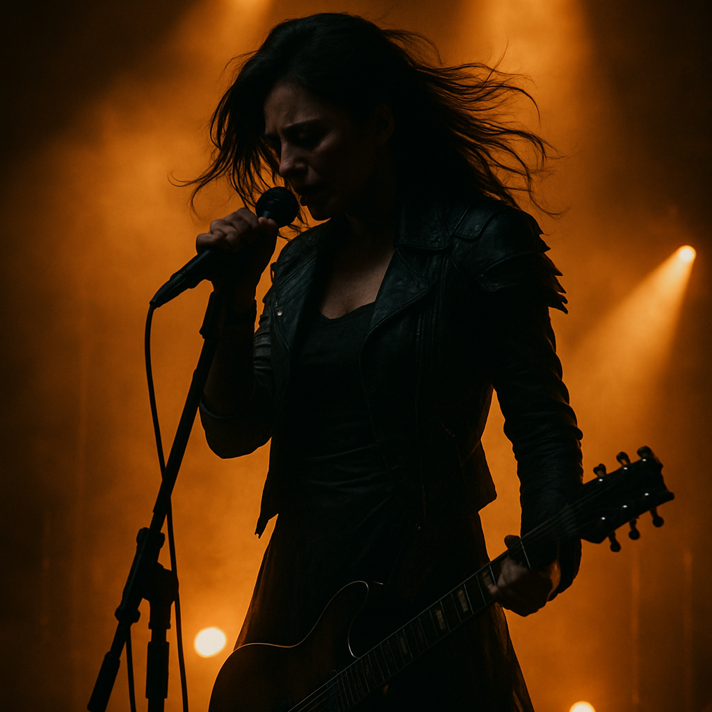 Symphonic rock ballad at 80 BPM featuring distorted electric guitars, cinematic orchestral strings, and dynamic drum fills, Gritty, powerful production supports raw female vocals with echoing harmonies, delivering a dramatic heartbreak theme through a verse-chorus-bridge-chorus-outro structure, Melancholic yet explosive atmosphere achieved through layered instrumentation, dynamic crescendos, and orchestral-guitar interplay, Drawing inspiration from Evanescence while maintaining originality, End with an electric guitar solo over fading cello to close with emotional impact