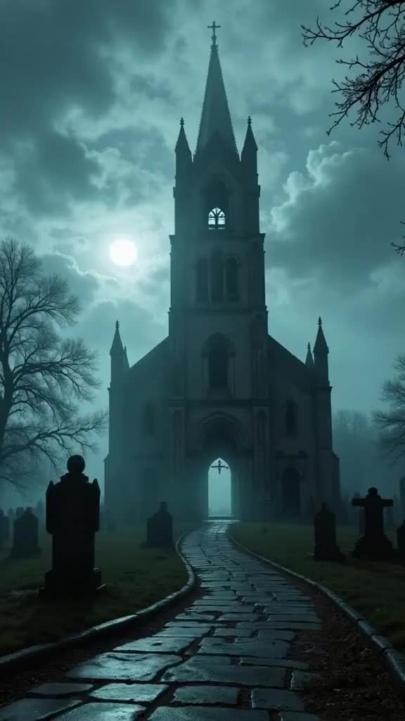 Atmospheric dark folk with deep church bell tones echoing through mist, slow bowed bass, distant choral hums, and faint tolling metal sounds, The melody is minimal, with cold reverb, creating a ghostly and sorrowful atmosphere, Vocals are soft, almost like a ghost’s lullaby, carrying a chilling and mournful tone